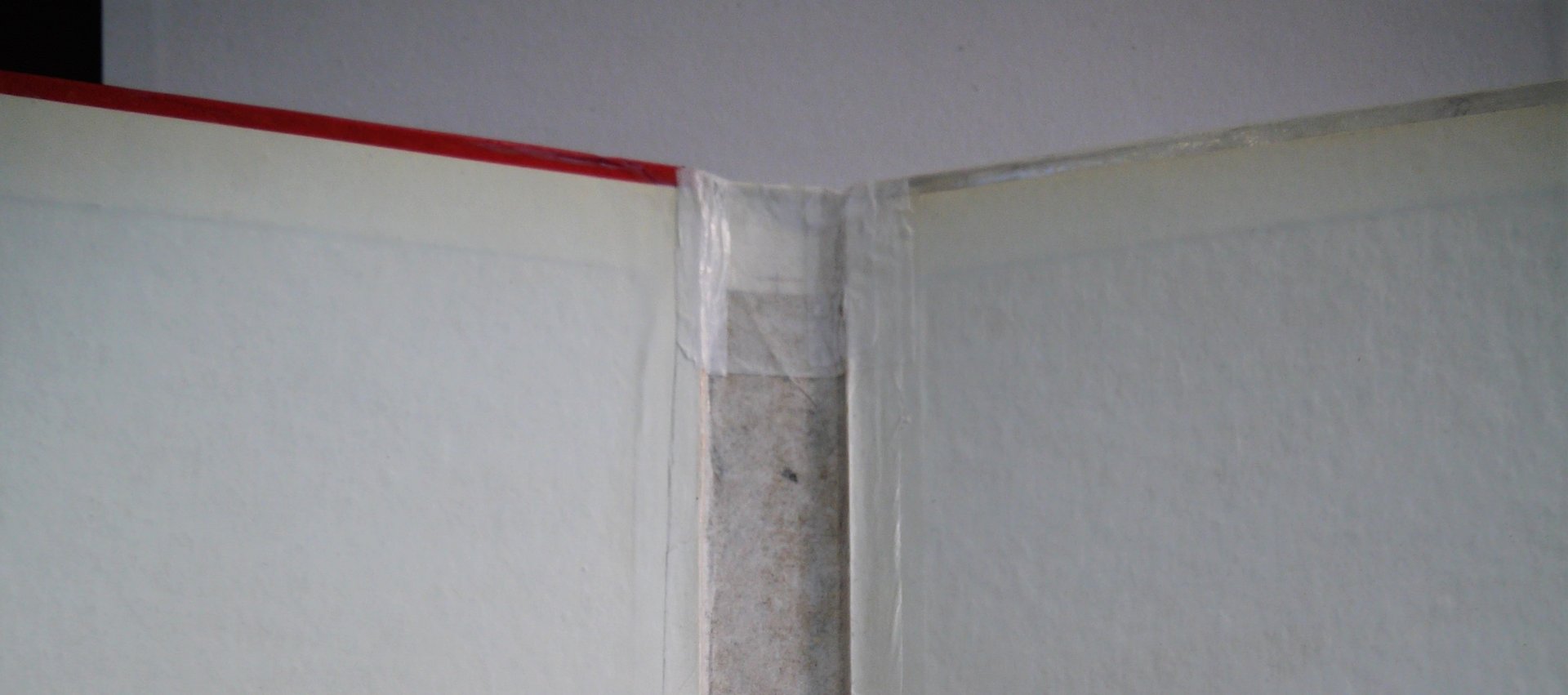 The areas filled with japanese paper were then retouched, with watercolour for the matt areas and acrylic for the glossy areas (red and yellow).