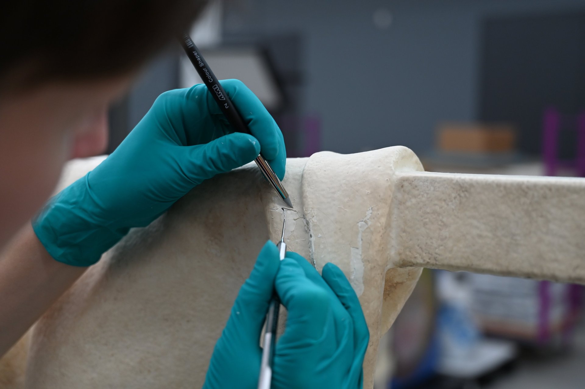 L'œuvre présente différentes dégradations selon les matériaux concernés. L'objectif est de renforcer les parties endommagées, combler les parties manquantes et se rapprocher de l'esthétique originelle de l'œuvre.